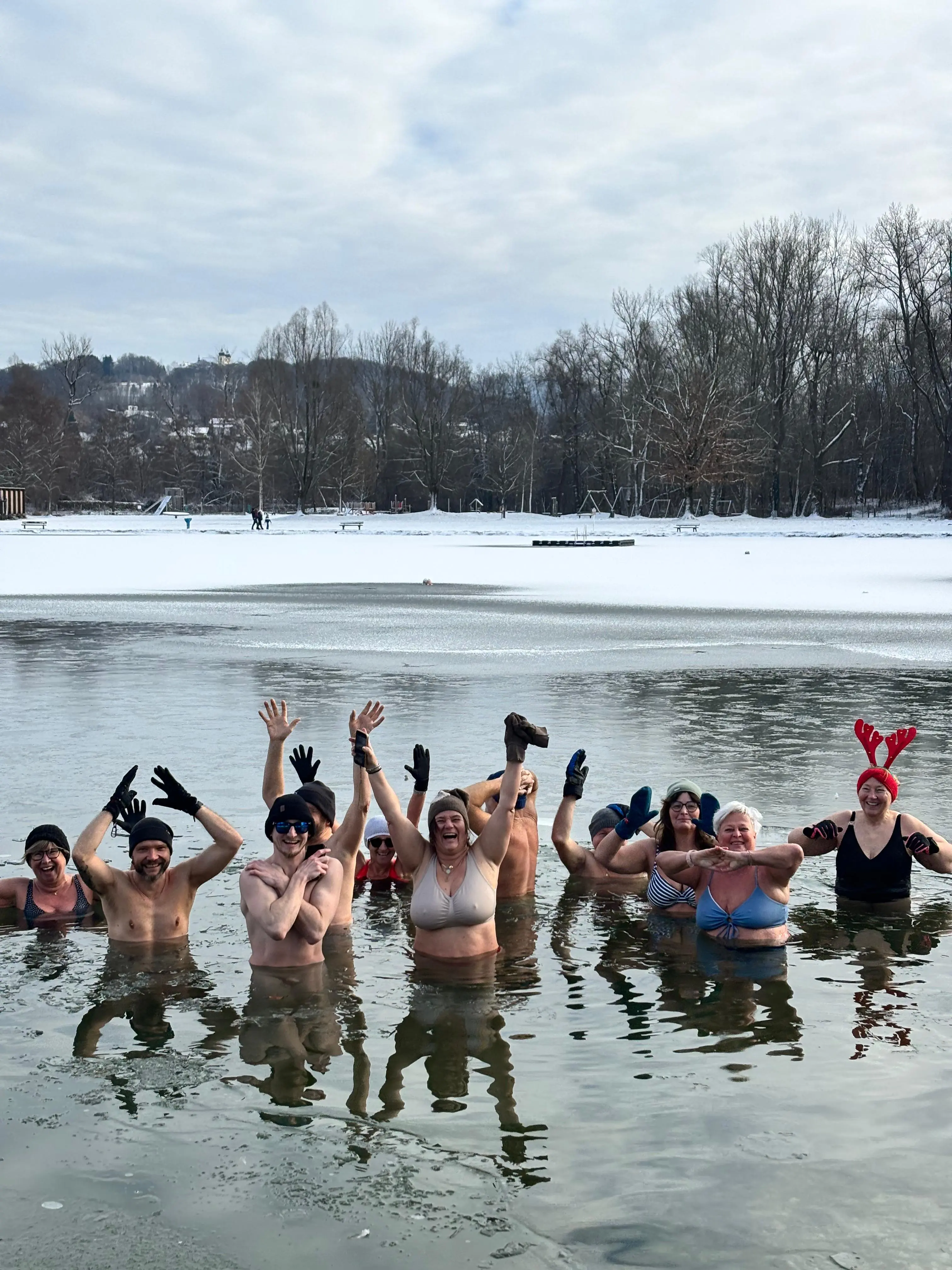 ❄️ Auch wenn du Herz-Kreislaufprobleme, Bluthochdruck, oder Diabetes hast, kannst du natürlich gerne auch nur „trocken“ dabei sein und die Übungen (sanft) mitmachen. Gib mir einfach bescheid.Natürlich kann auch jeder kommen, der zusehen oder nur die Übungen mitmachen mag. Es gibt kein Muss